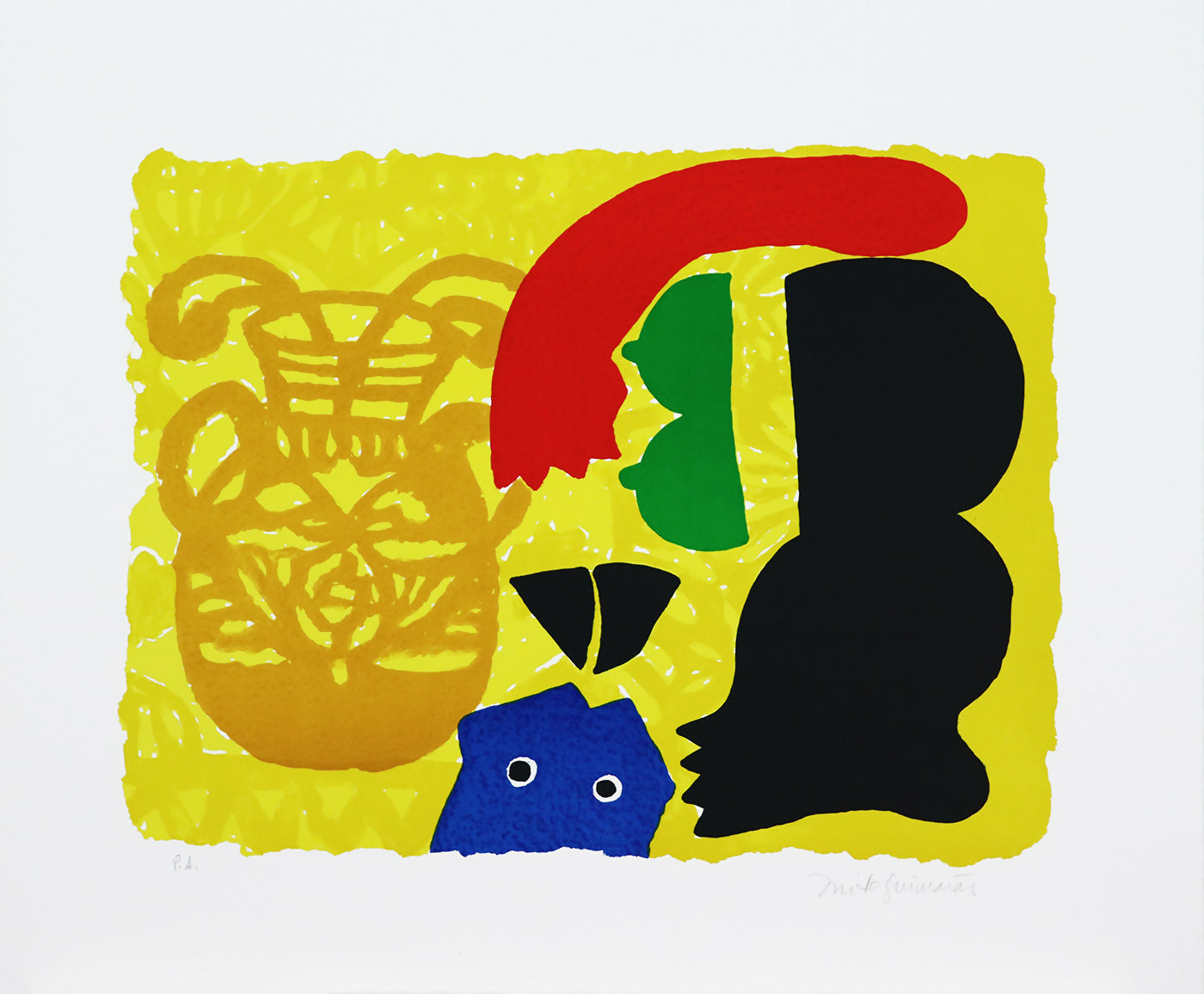 Bekannt unter dem Namen der Stadt, in der er geboren wurde, José de Guimarães (1939) ist eine Figur der portugiesischen Kunst, die verschiedene Bereiche von der bildenden Kunst über Geologie und Ingenieurwesen bis hin zur Archäologie erforschte. Reisen nach Afrika, Asien und Südamerika prägten seine Karriere, indem sie eine ästhetische Sprache anregten und entwickelten. Ende der 1970er Jahre schuf er ein Alphabet, das auf den Formen und Symbolen der afrikanischen Kultur basierte und diese in seine Werke einführte. In den 1980er Jahren begann er, die Grenzen zwischen Malerei und Skulptur auszuloten, mit Stücken, die aus unkonventionellen Materialien hergestellt wurden – Glasfaser und Papier, die speziell vom Künstler selbst hergestellt wurden. Mit kräftigen und fröhlichen Farben zeichnen sich seine Werke durch die Themenkreuzung zwischen Tier und Mensch, Mineral und Pflanze aus. Der portugiesische Künstler sammelte jahrzehntelang afrikanische Kunst, präkolumbianische und alte chinesische Kunst, die derzeit im CIAJG – Centro Internacional de Artes ausgestellt ist José de Guimarães.