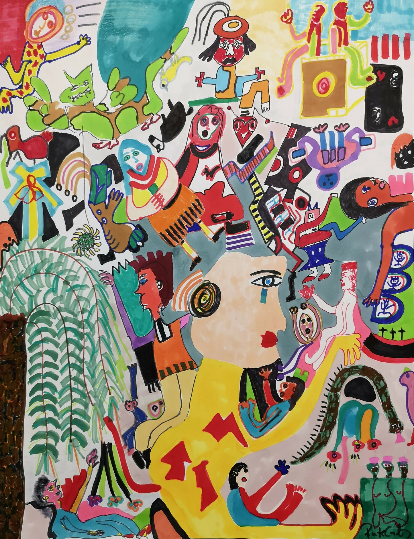 Die Figuren, die er schafft, sind keine Menschen; sie sind emotionale Archetypen und Schlachtfelder, auf denen Identität verhandelt, fragmentiert und offengelegt wird. Seine rebellische Kunst ist ein Fenster, das sich furchtlos öffnet und weit davon entfernt ist, sich an Konventionen zu halten, sondern die Grenzen des Ausdrucks herausfordert.