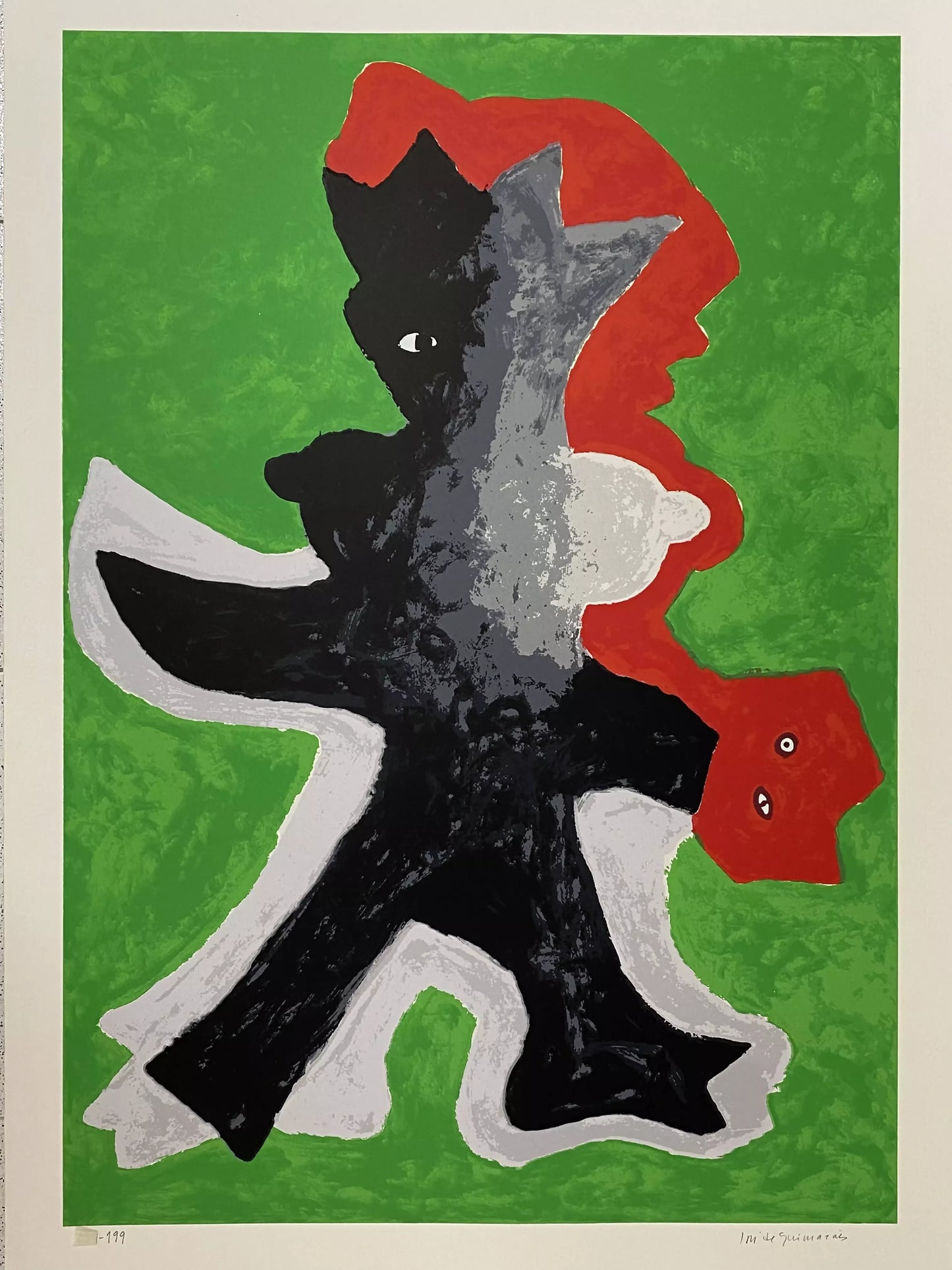 Known by the name of the city where he was born, José de Guimarães (1939) is a figure of Portuguese art, who explored different areas from the plastic arts, through geology, engineering to archaeology. Travels to Africa, Asia and South America marked his career by stimulating and developing an aesthetic language. At the end of the 1970s, he created an alphabet based on the shapes and symbols of African culture, introducing these into his works. In the 1980s he began to explore the boundaries between painting and sculpture, with pieces produced with unconventional materials - fiberglass and paper specifically made by the artist himself. With strong and cheerful colors, his works are characterized by the crossing of themes between animal and human, mineral and vegetable. For decades, the Portuguese artist collected African art, pre-Columbian and ancient Chinese art that is currently on display at CIAJG - Centro Internacional de Artes José de Guimarães.