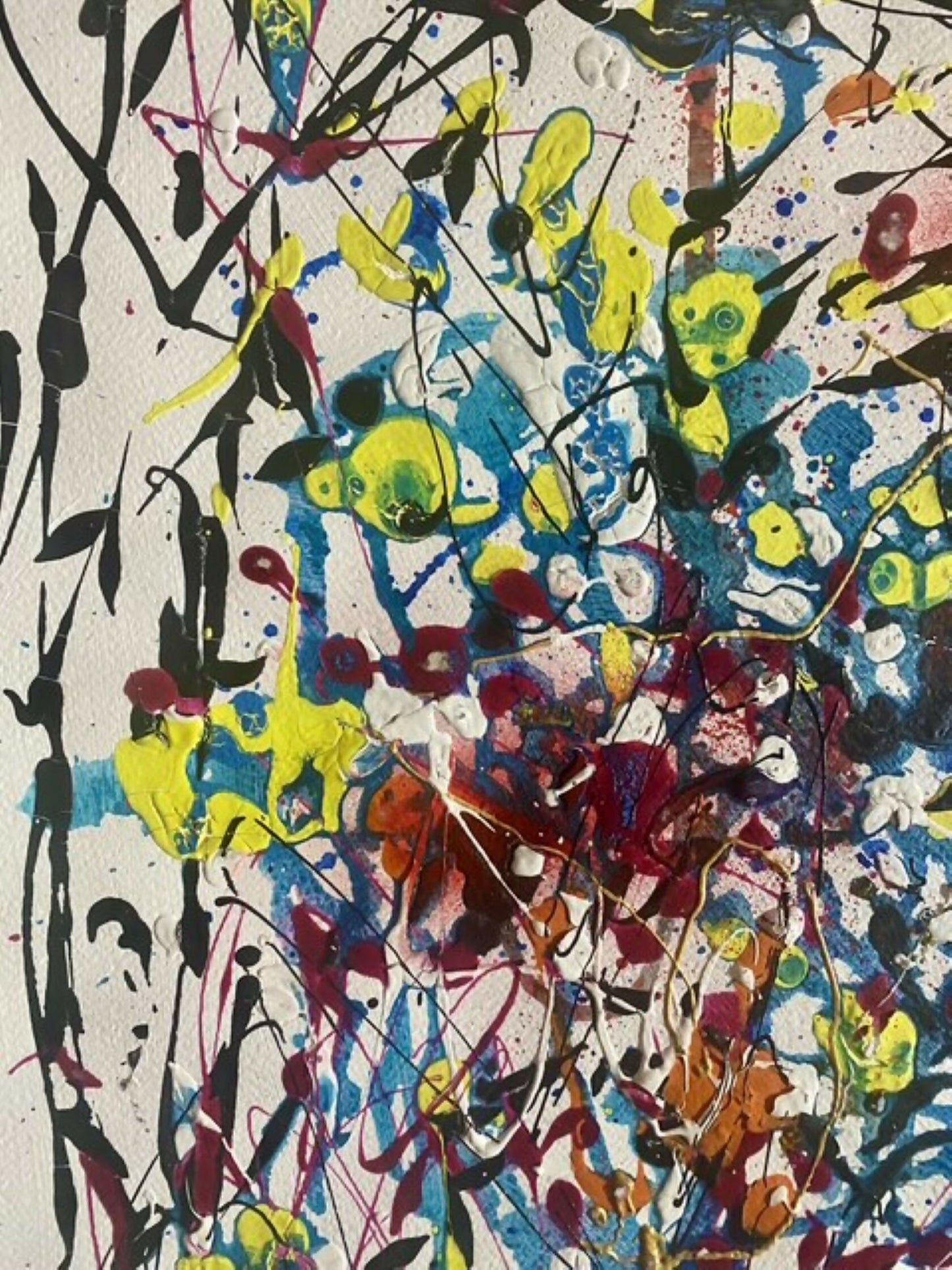 Dedicated to drawing and painting from an early age, she initially developed a figurative and expressionist language. Starting in 2015, she embraced an abstract approach, characterized by free gestures and expressive layers, without preconceived aesthetics. Her work is distinguished by constant experimentation with materials and techniques, exploring acrylic, oil, oil pastel, and charcoal.