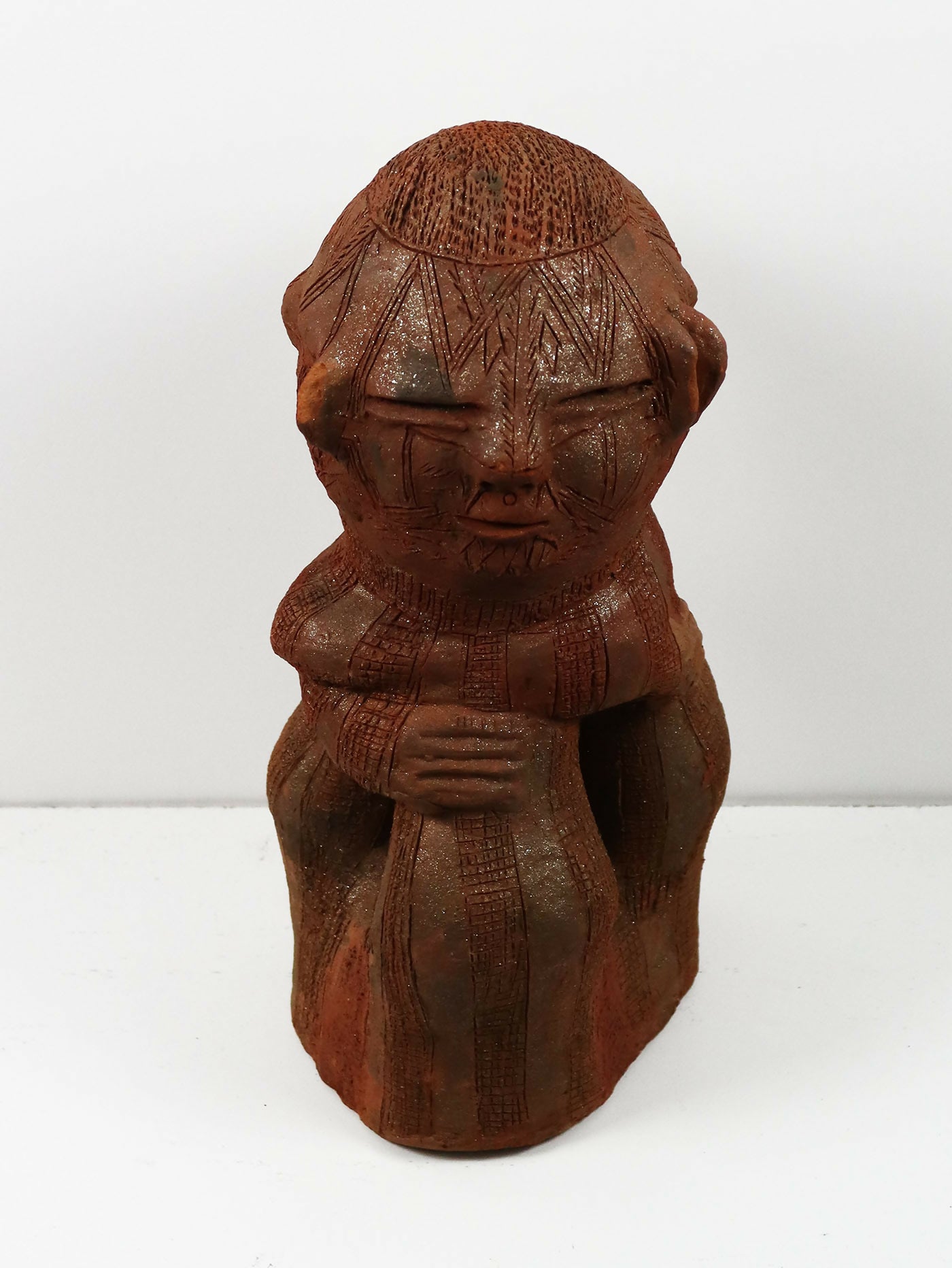 Clay sculpture with graphite painting