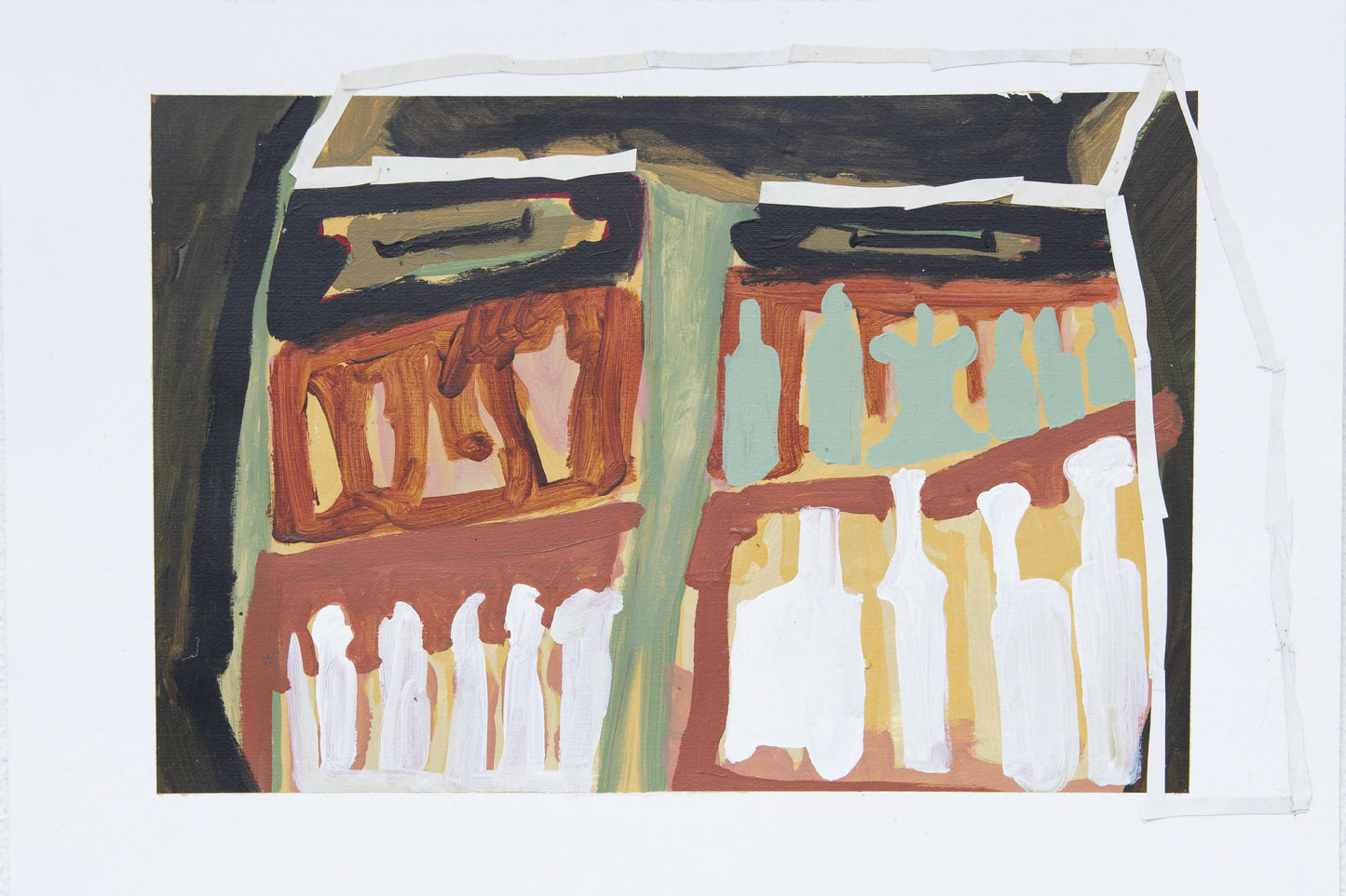Acrylic and raw cloth collage on Pittura Fabriano paper, Fine Grain, 400 gr
