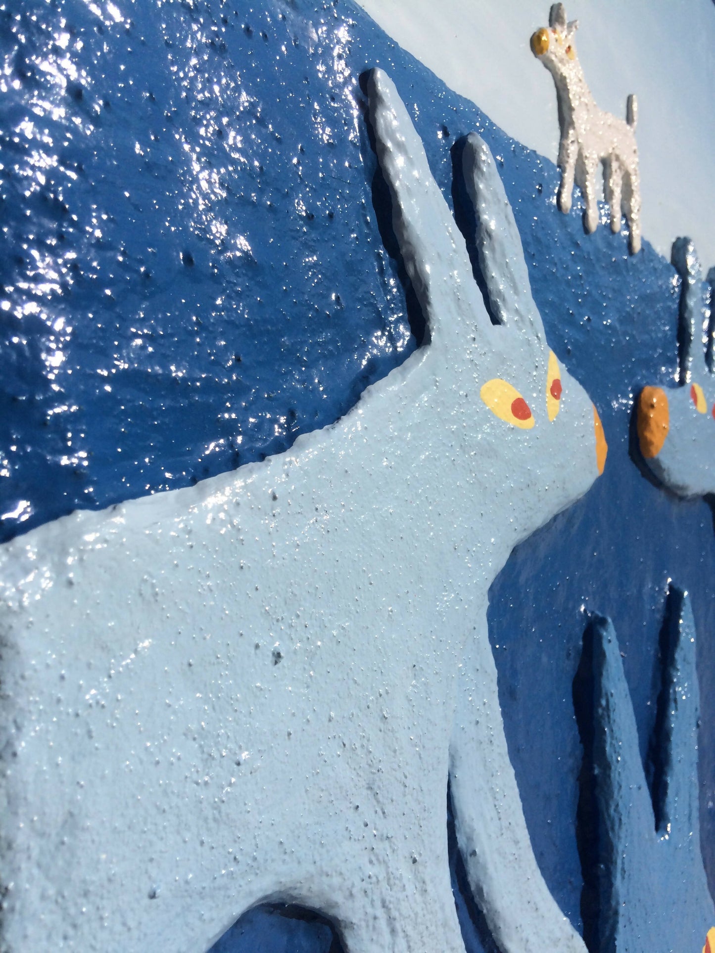Hugo Castilho crea un universo íntimo, combinando su gusto por la fantasía y el dibujo lineal. A partir de la superficie, el dibujo, modelado y pintado, emerge como una obra tridimensional. En este encuentro se celebra la vida de una manera inclusiva, ética y humorística, abrazando a los humanos, los animales y la naturaleza como vehículos de expresión figurativa. Hugo Castilho Nació en Setúbal en 1995, se licenció en Artes Visuales - Variante Multimedia en 2016, en la Universidad de Évora y, en 2021, completó una Maestría en Pintura en la Facultad de Bellas Artes de la Universidad de Lisboa. Expuso su obra artística individualmente en 2017 y 2019 en el Espaço das Artes de la Casa da Cultura de Setúbal, y en 2022 en la Galería Arte Periférica del Centro Cultural de Belém. Colectivamente expuso en la Zetgallery de Braga en 2019, y en el Drawing Room Lisboa del Museo Nacional de Bellas Artes de la Sociedade en 2021, representada por Galeria Arte Periférica. Actualmente, se centra en producir pinturas en alto relieve y escribir novelas de no ficción.