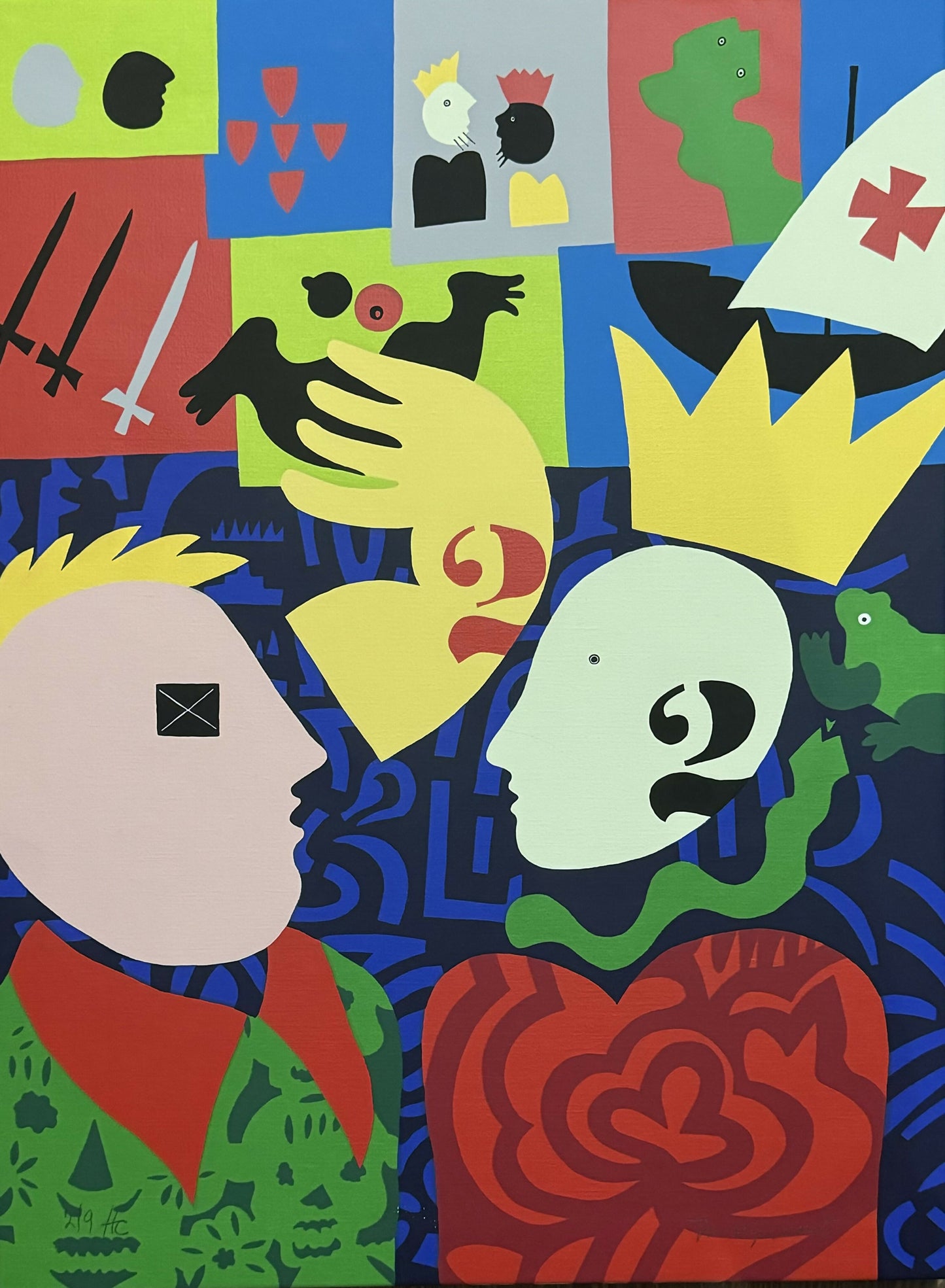 Conocido por el nombre de la ciudad donde nació, José de Guimarães (1939) es una figura del arte portugués, que exploró diferentes áreas desde las artes plásticas, pasando por la geología, la ingeniería hasta la arqueología. Los viajes a África, Asia y América del Sur marcaron su carrera estimulando y desarrollando un lenguaje estético. A finales de los años 70 creó un alfabeto basado en las formas y símbolos de la cultura africana, introduciéndolos en sus obras. En la década de 1980 comenzó a explorar los límites entre pintura y escultura, con piezas producidas con materiales no convencionales: fibra de vidrio y papel fabricados específicamente por el propio artista. De colores fuertes y alegres, sus obras se caracterizan por el cruce de temas entre animal y humano, mineral y vegetal. Durante décadas, el artista portugués coleccionó arte africano, Arte precolombino y antiguo chino que actualmente se exhibe en CIAJG - Centro Internacional de Artes José de Guimarães.