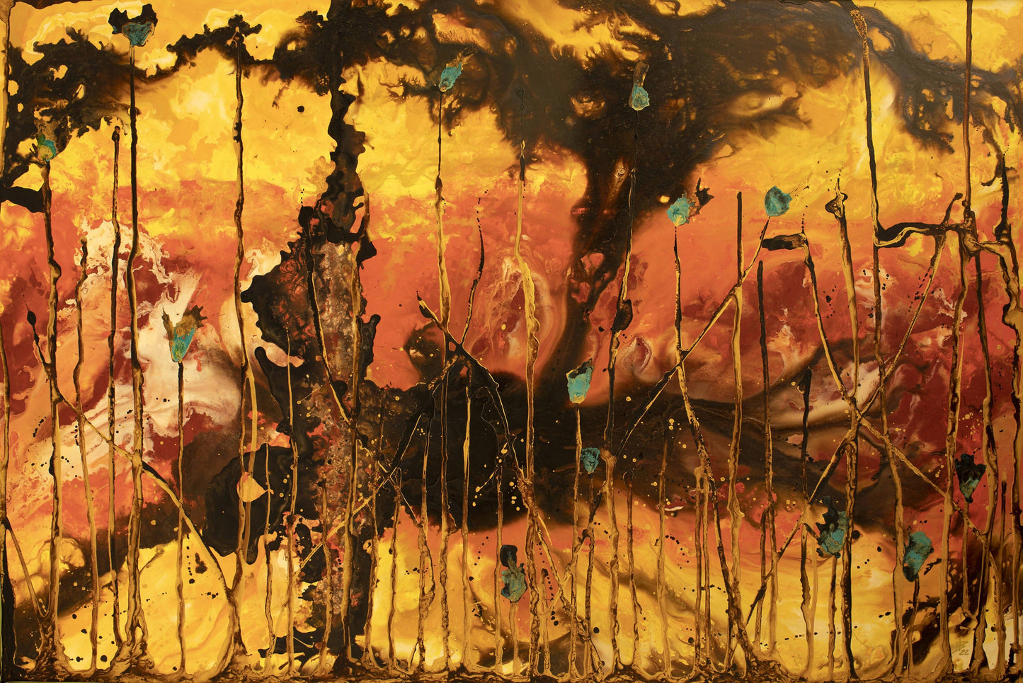 Es una obra abstracta, realizada con acrílico y resina sobre madera.