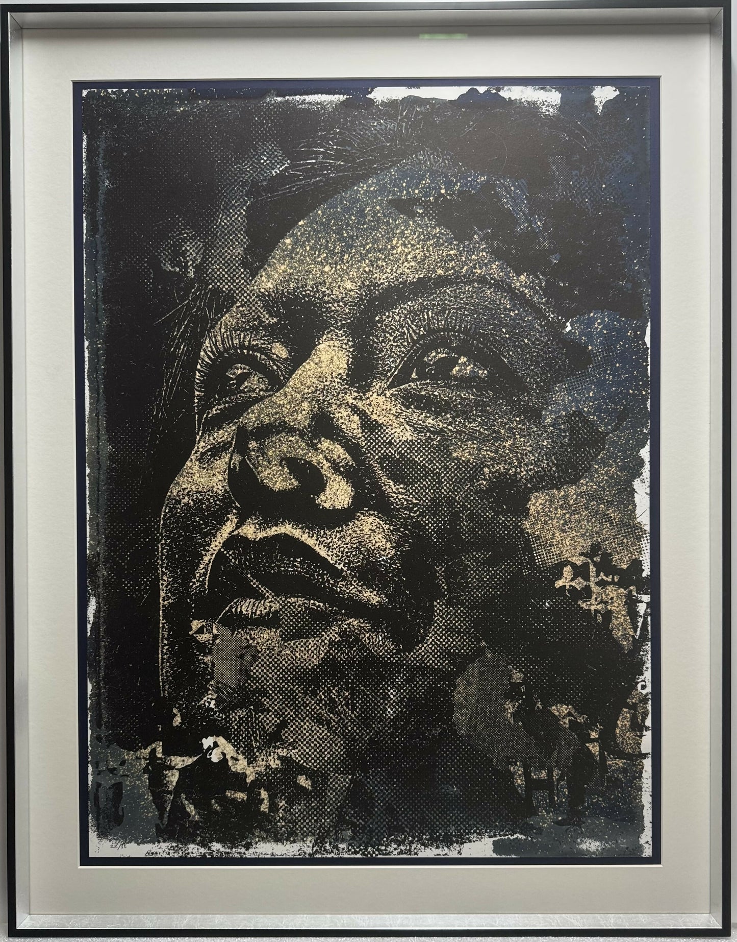 Obra enmarcada con vidrio de museo