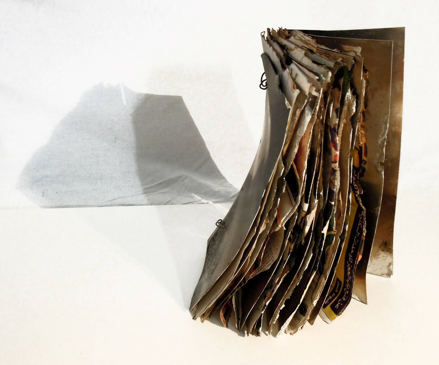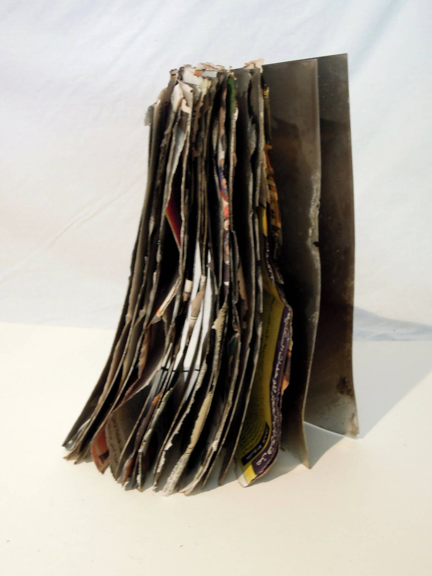 Livro metálico com folhas de jornal árabe