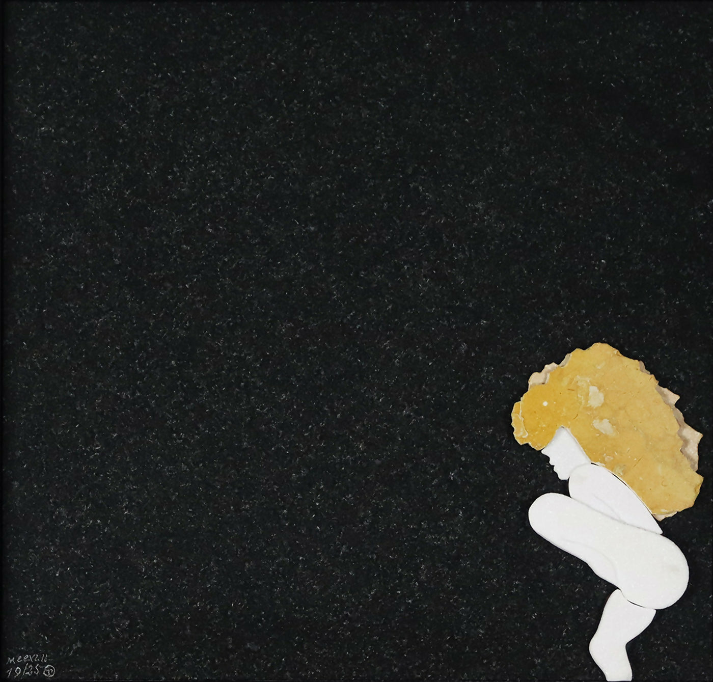 Escultura em pedra mármore aplicada em placa de granito