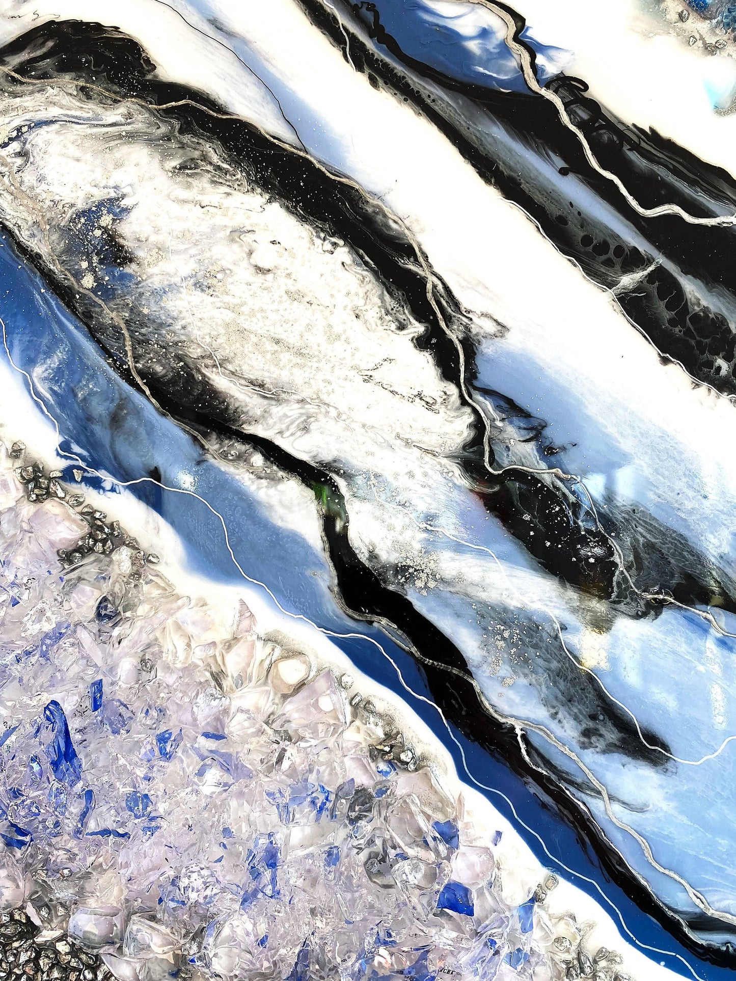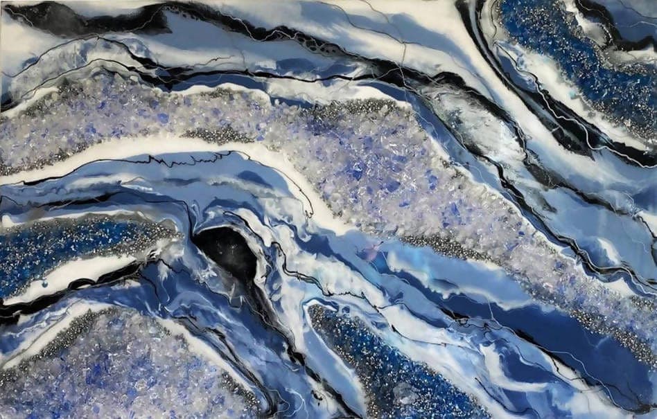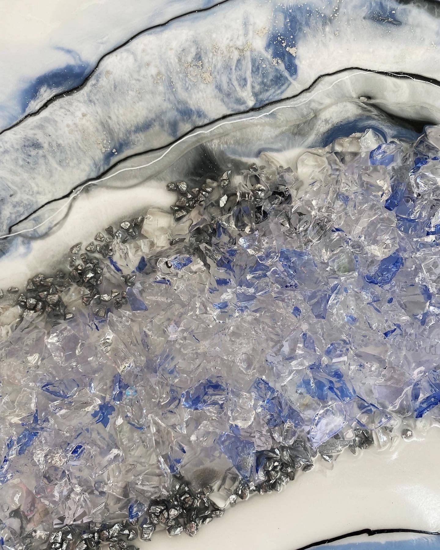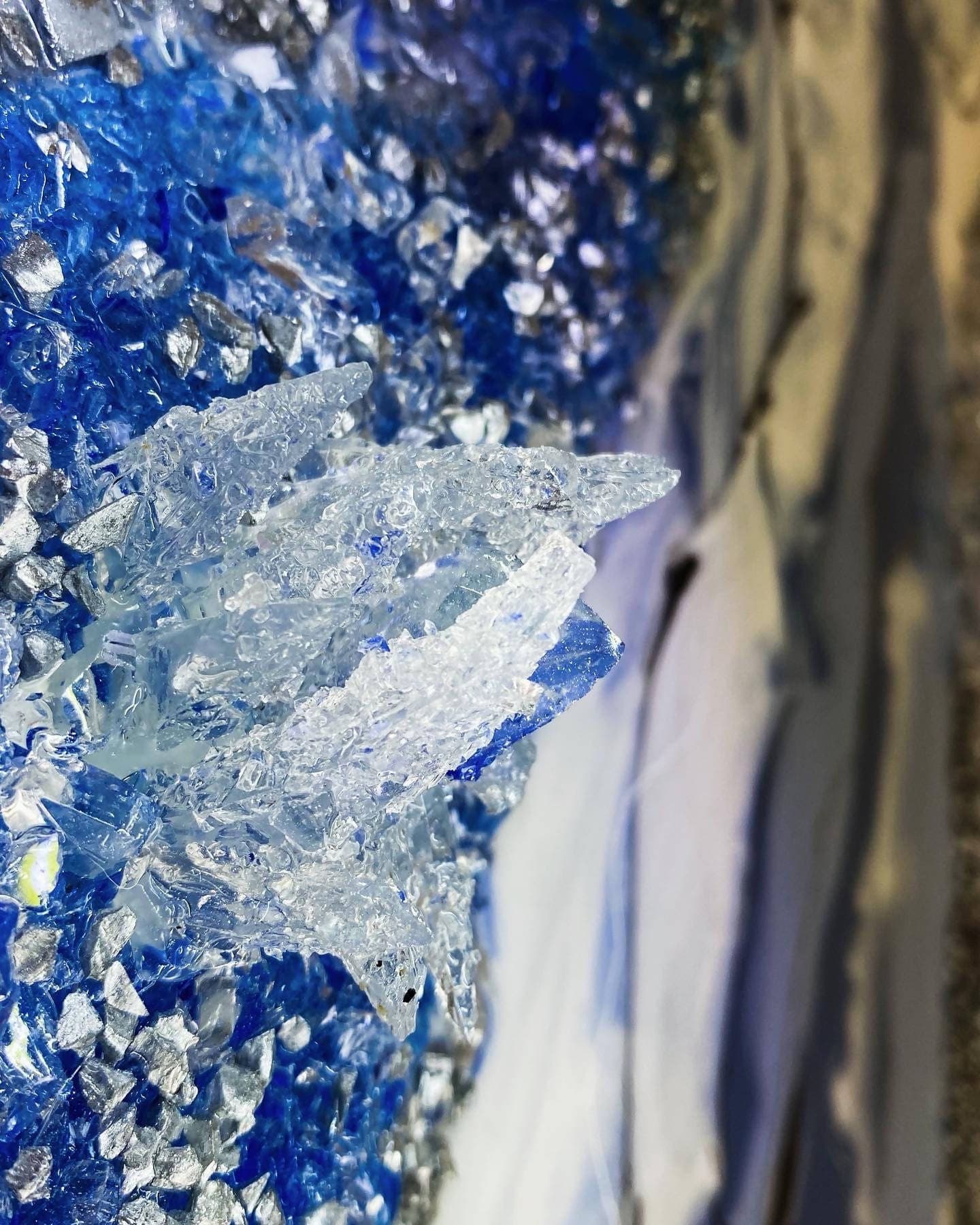 Materiais: Contraplacado marítimo, resina epóxi, vidro reciclado, areia e pigmentos coloridos.