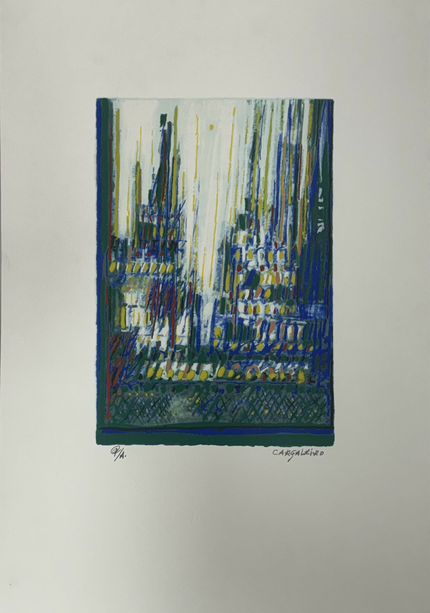 O artista português Manuel Cargaleiro (n. 1927) criou uma linguagem marcante no mundo artístico pela combinação da cerâmica e da pintura, através de jogos entre cor, luz e sombra. As suas obras são fortemente caracterizadas pelo recurso à geometria e à linguagem abstrata, tendencialmente não-figurativa. As pinceladas espontâneas e dinâmicas com cores vibrantes, sobrepõem-se à forma, reduzindo a formalidade que caracteriza os elementos geométricos. A exploração da cor é uma das principais características da sua obra, por revelar sentimentos e criar diversos espaços numa só composição. Denota-se a influência do azulejo tradicional português, pela repetição dos quadriláteros e o uso de cores como azul e branco. Além da pintura e cerâmica, Manuel Cargaleiro também explorou o desenho, a escultura, a tapeçaria e a gravura.