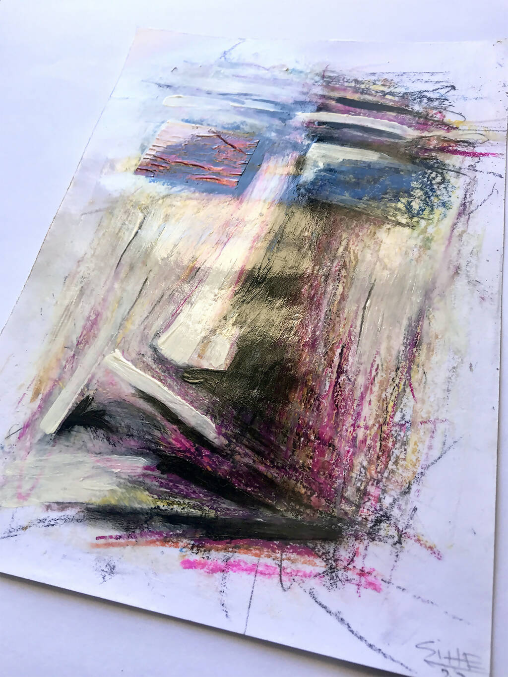 Técnica mista sobre papel - Carvão, pastel a óleo, pastel seco, tinta acrílica, papel celofane e verniz acrílico