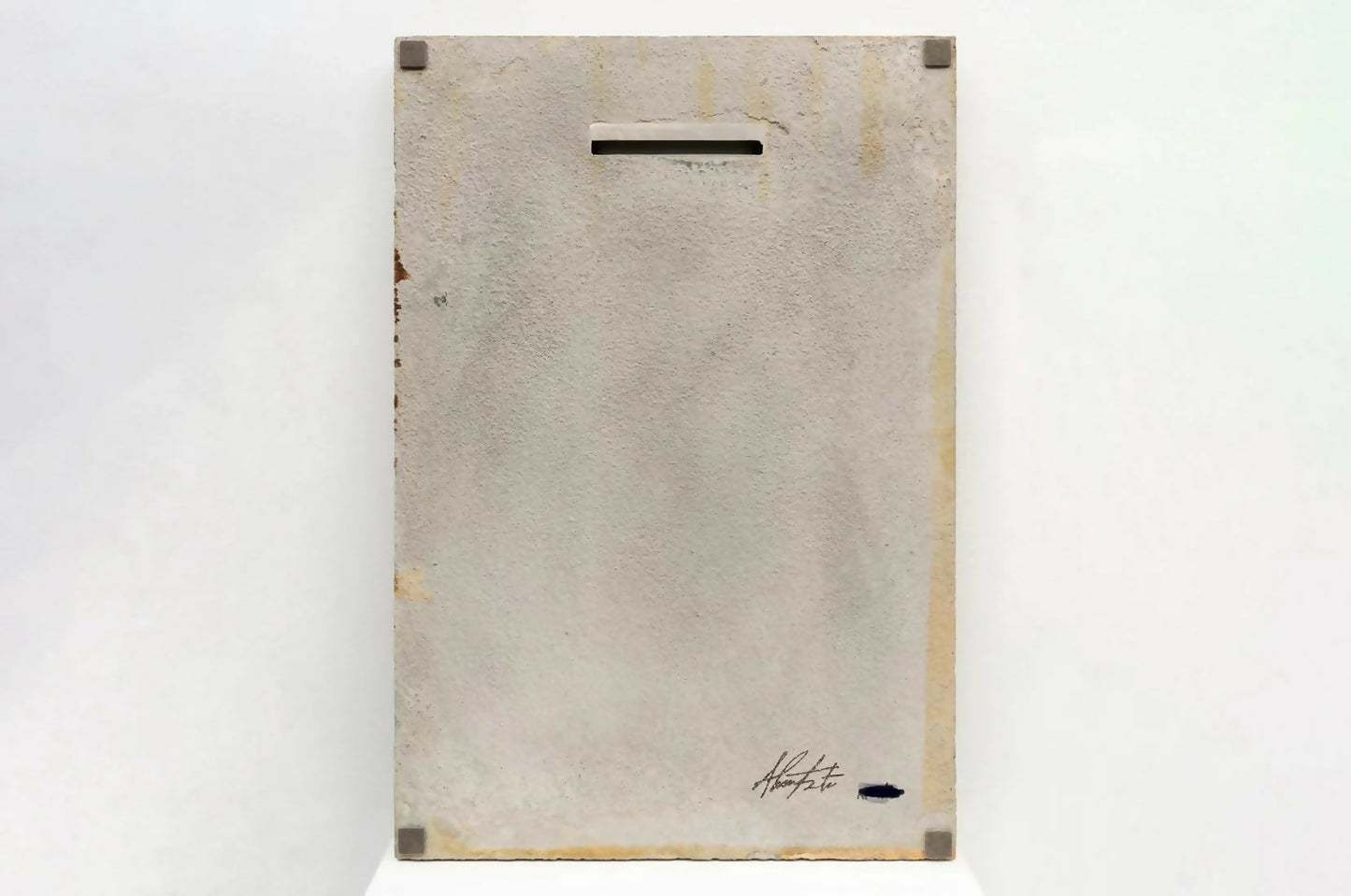 Relevo em cimento fundido, limalhas de ferro enferrujadas por ácido